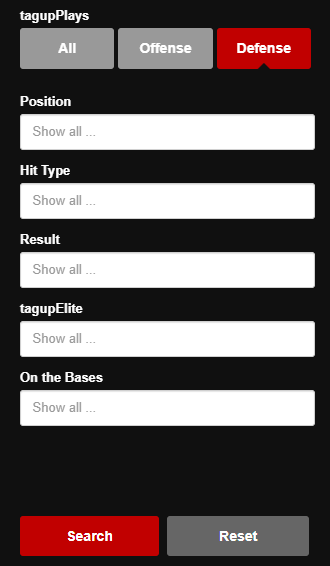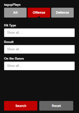 To view only offensive plays, utilize the Offense option and enter an exhibit of exquisite base-knocks, bombs, bunts, and more. Simply adjust your filters to see the hit type, results, and action on the bases that you want to see.