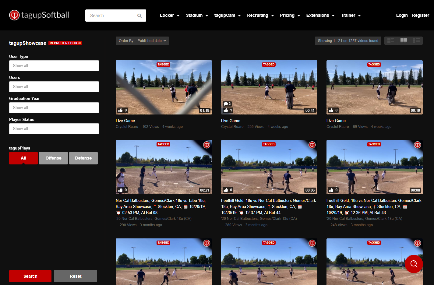 Don’t miss the premium feature that delivers on both sides of the fence. For recruiters, tagupShowcase delivers an engaging viewing experience, giving its users the ability to utilize seventeen different filters to arrange and find the top defensive and offensive plays through our search engine. Whether you are looking for a titan at the plate, a golden glover on the field, or an ace on the mound, tagupShowcase makes it effortless to exponentially increase your scouting. As a player, tagupShowcase displays your plays on the desktop of recruiters across the nation. The more you tagup, the easier it will be to catch the eyes of your recruiting audience. The Showcase is the place to find and be found. Register today and become a part of the show.
