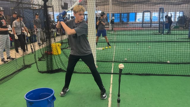 2028 Marcus Hirschkorn, RHP/SS, NextLevel Development Baseball Camp Fargo Evaluations: Hitting > Putting All Together (Tee) (TEST), 📍Fargo, ND, 📅 Sat, 01/11/25, ⏰ 11:49 AM